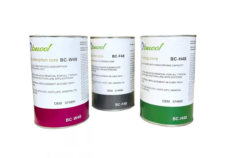 BC-H48 на 80% изготовлен из материала типа «молекулярное сито» и на 20% из активированного алюминия. Устанавливается в жидкостную линию и предназначен для работы с хлорфторуглеродными (ХФУ) и гидрохлорфторуглеродными (ГХФУ) хладагентами. Эффективно поглощает находящиеся в системе влагу и кислоты.