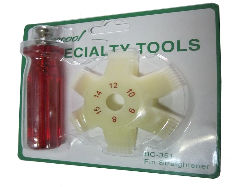 Универсальная гребёнка BC-351 предназначена для выправления замявшихся рёбер теплообменников. Гребёнка BC-351 изготовлена из прочного пластика, рабочая часть имеет вид шестерёнки с шестью зубьями, где каждый "зуб" представляет собой гребёнку с различным шагом между прорезями для оребрения теплообменников. Рабочая часть закреплена на съёмной пластиковой ручке.