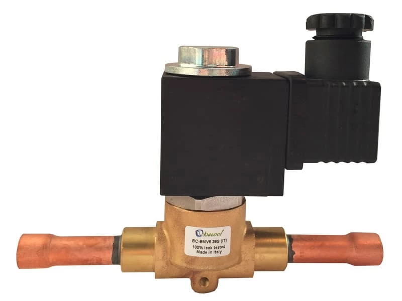 Соленоидный клапан BC-EMV6 12S (IT)-произведен в Италия для Becool, температура рабочей среды -35...+105°C, материал корпуса-латунь, катушка 230В/50Гц, потребляемая мощность катушки 21 Вт, максимальное рабочее давление 45 bar. Присоединительные патрубки под пайку 1/2" (12мм).